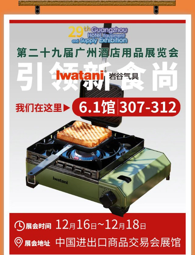 非常感謝您對巖谷氣具(珠海)有限公司長期以來的大力支持,我司參加了第二十七屆廣州酒店用品展。本次展會我司隆重推出了幾款新產(chǎn)品,展會設(shè)計與往屆不同有所創(chuàng)新,展示世界美食、戶外系列等,恭迎各位蒞臨指導(dǎo)。