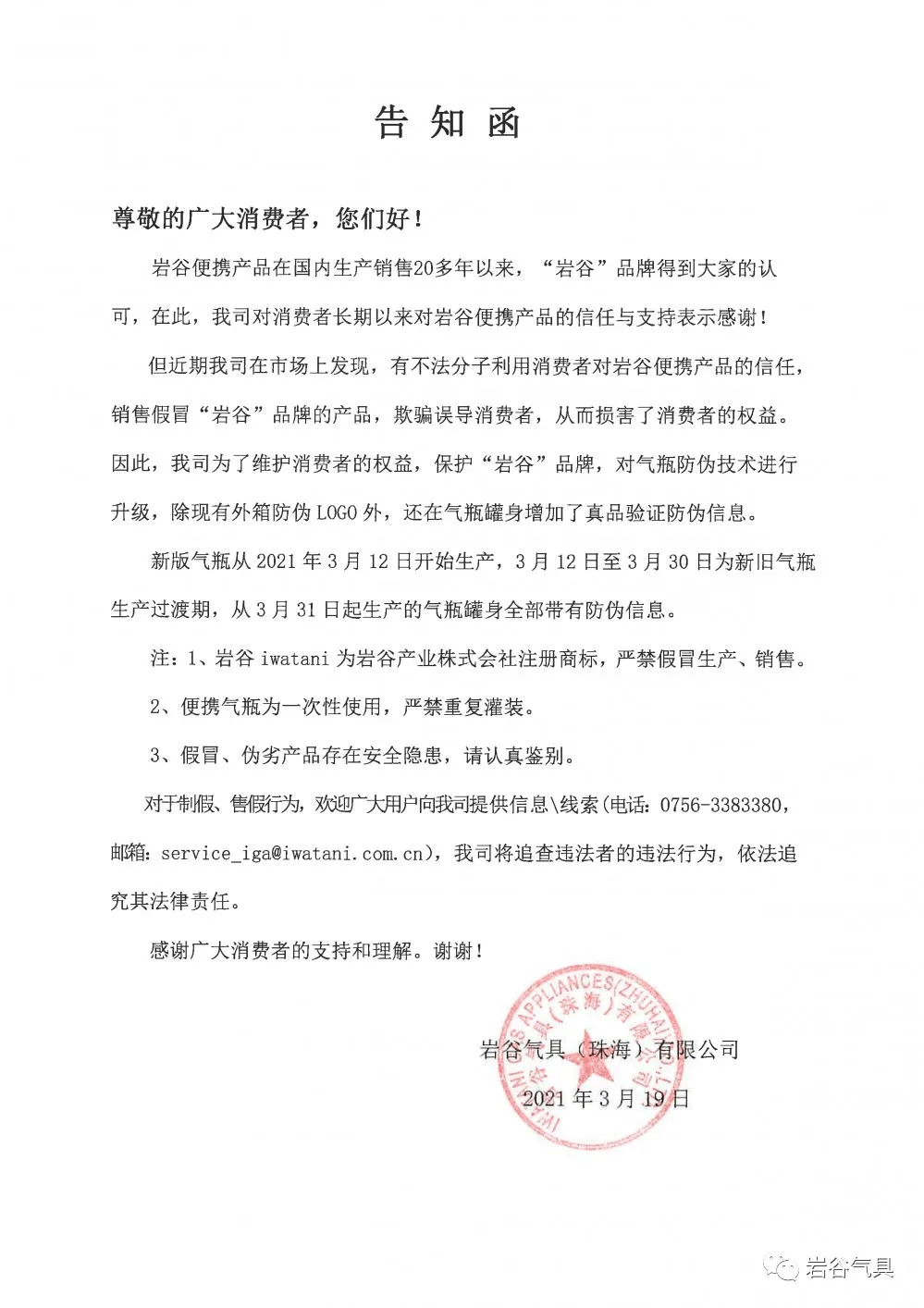 近期發(fā)現(xiàn)市場(chǎng)上銷(xiāo)售假冒“巖谷”品牌的產(chǎn)品,為了維護(hù)消費(fèi)者的權(quán)益,保護(hù)“巖谷”品牌,對(duì)氣瓶防偽技術(shù)進(jìn)行了升級(jí),除現(xiàn)有外箱防偽LOGO外,還在氣瓶罐身追加了真品驗(yàn)證防偽信息。